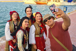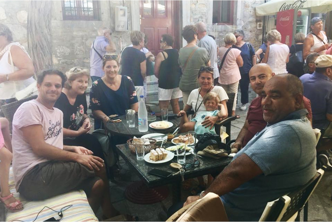 Breakfast with friends in Mesta, one of the most beautiful villages in Greece.