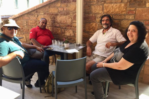 Meeting with our friend Missetzis George head of the hotel associations in Chios and his wife Maria in their new beautiful hotel Chios City Inn in the Centre very ideal. George helped us a lot with our 101 Book of Chios and hope he can make with his wife to our country.