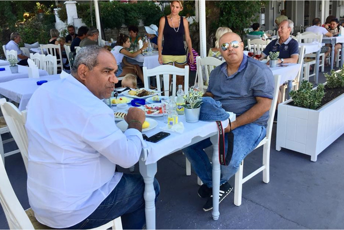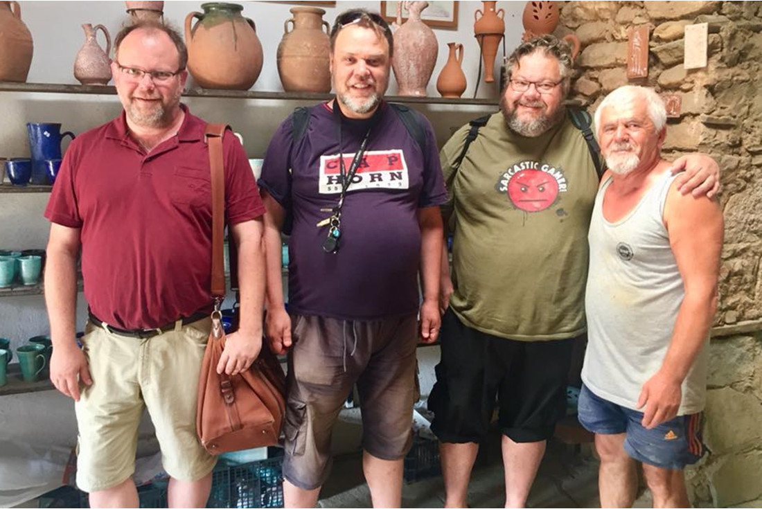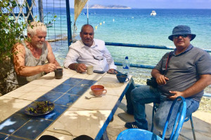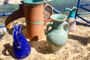 Visiting our friend Creative Potter Costis who has a work shop on the beach in Thassos and we had tea with him and invited him to Bahrain again since he visited our country in 2010 and we host a workshops for children and an exhibition for him too.